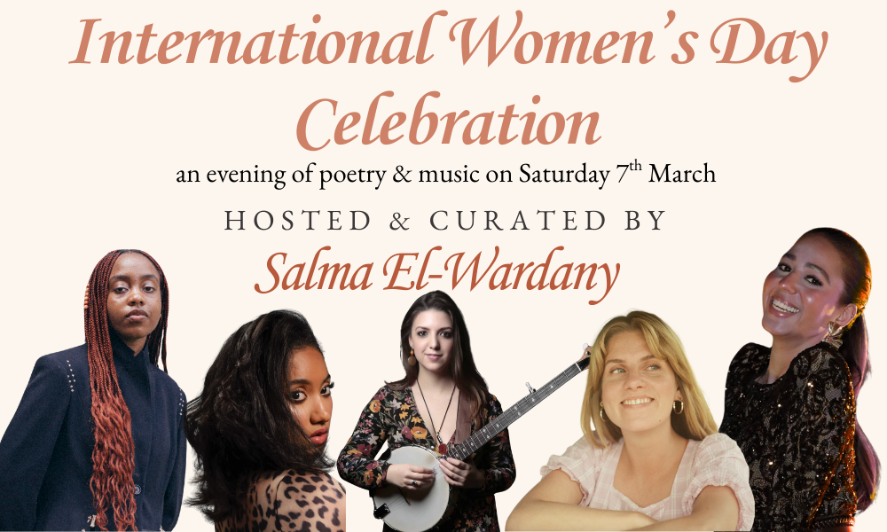 Join us for an evening of poetry and music to celebrate International Women’s Day, hosted and curated by author, poet, and broadcaster Salma El-Wardany.